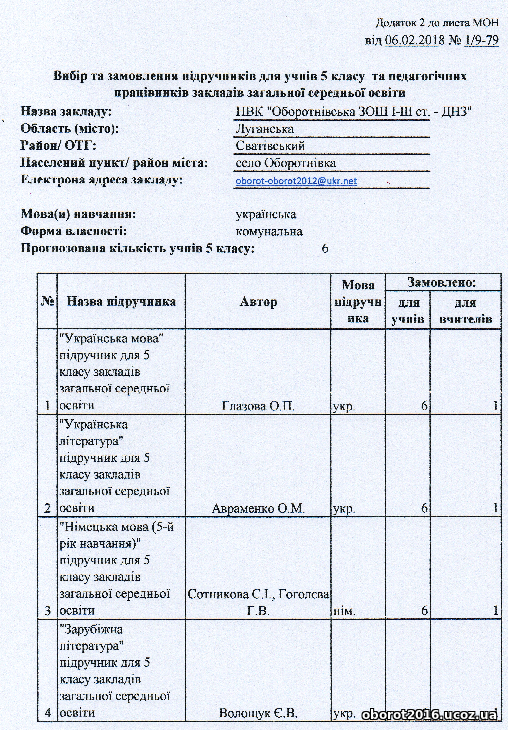 Вибір та замовлення підручників для 5 класу