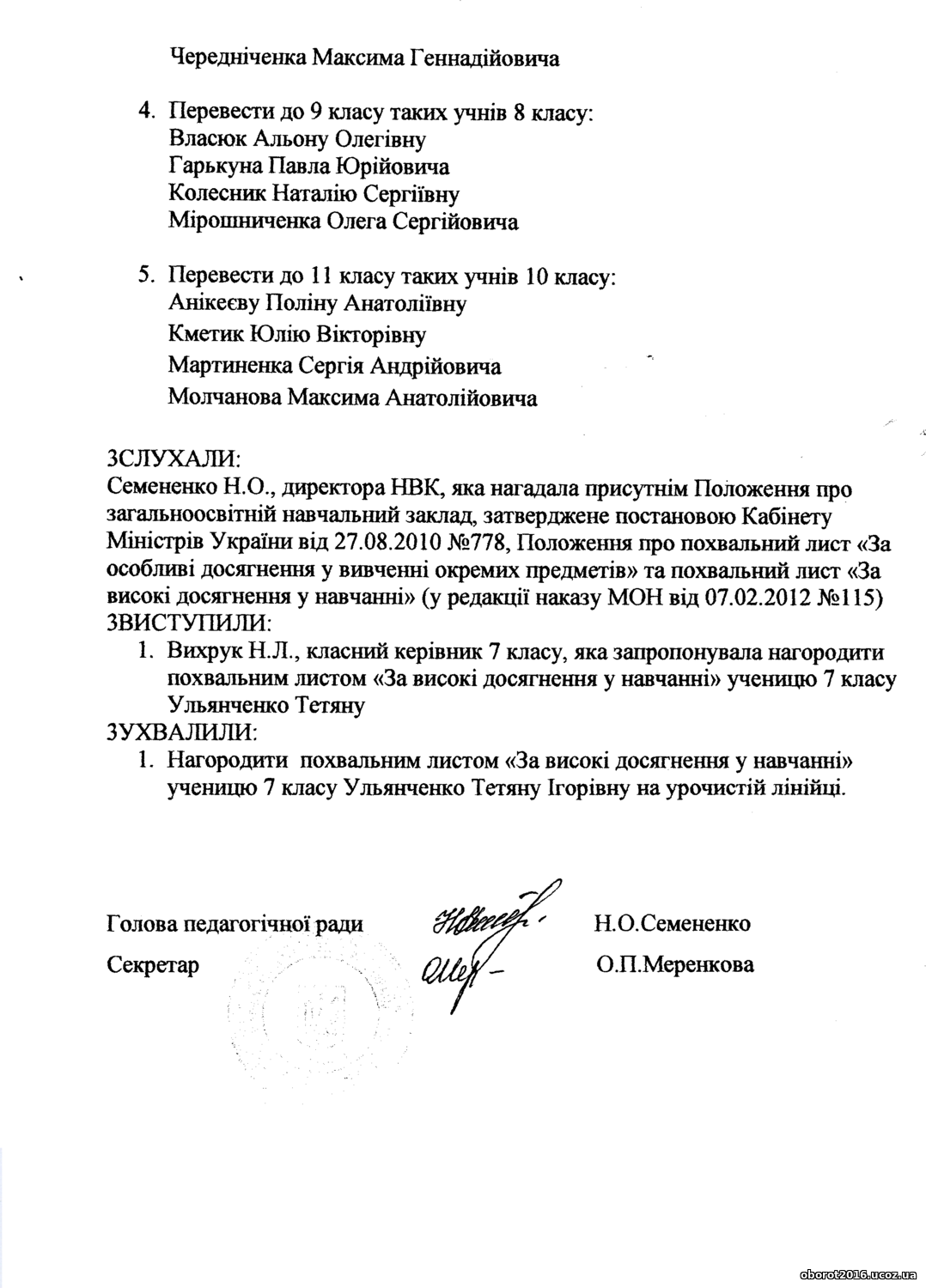 Про перевід учнів